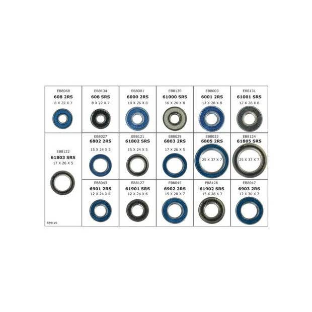608 LLB (6) / 6000 LLB (4) / 6901 LLB (4) / 6001 LLB (6) / 6802 LLB (6) / 6902 LLB (6) / 6803 2RS (4) / 6903 LLB (2) / 6805 LLB (6) / 608 SRS (4) / 61000 SRS (2) / 61901 SRS (2) / 61001 SRS (4) / 61802 SRS (2) / 61902 SRS (4) / 61803 SRS (2) / 61805 SRS (4)