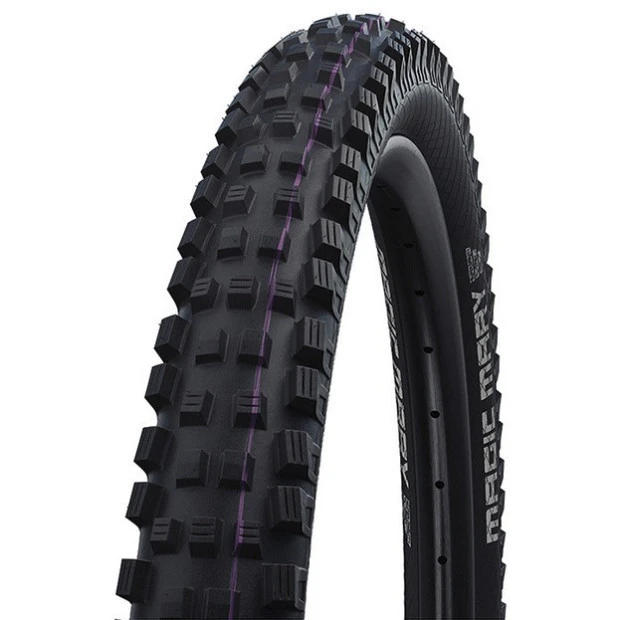 Le pneu Schwalbe Magic Mary HS447 Super Downhill est le pneu Gravity ultime. Idéal pour le Downhill et l’Enduro, il possède des caractéristiques polyvalentes parfaites pour presque toutes les pistes et les conditions. Son profil sophistiqué, combiné avec les meilleurs compounds et la meilleure construction, repousse les limites dans des proportions surprenantes. Les solides crampons latéraux ainsi qu’une bande de roulement agressive et ouverte offrent une traction de freinage maximale et une adhérence dans les virages, même sur terrain extrêmement boueux. Equipé de V-Groves, spécialement développés pour le Magic Mary, chaque crampon mord dans le sol pour encore plus d’adhérence. Des crampons coudés positionnés au milieu optimisent les caractéristiques de roulement.